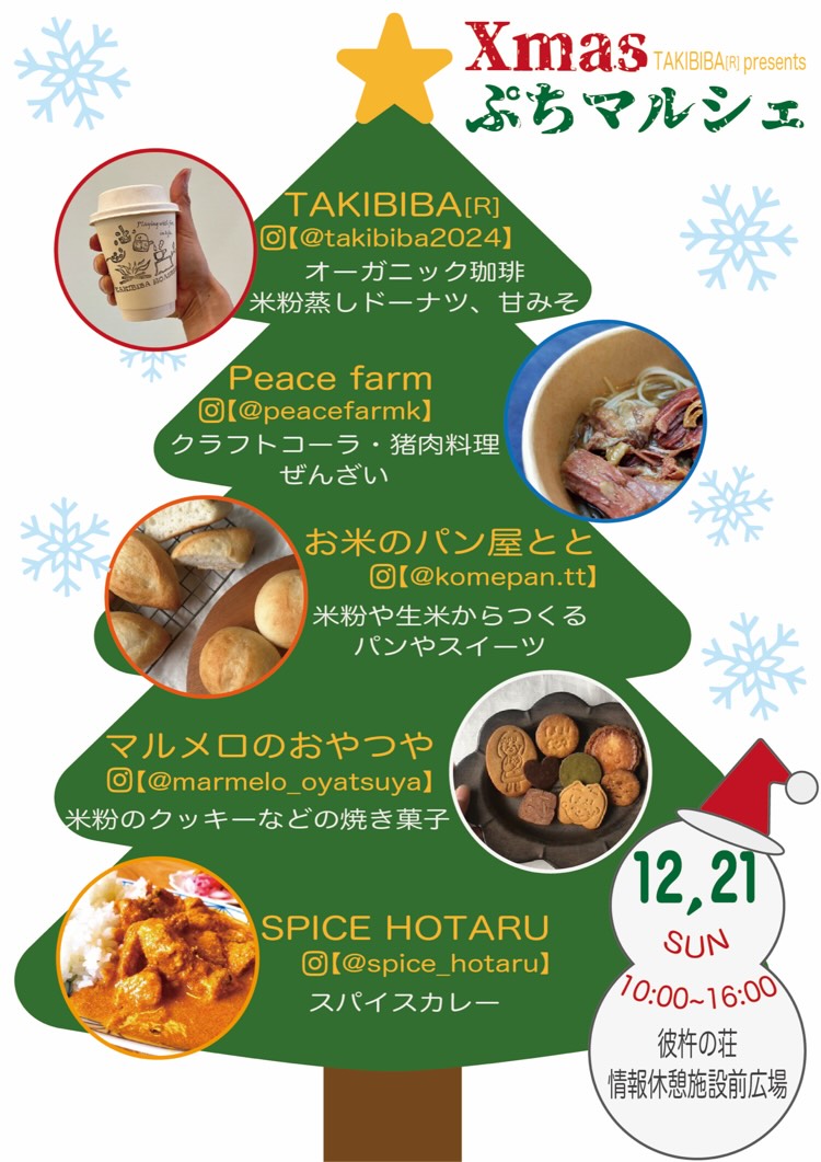 Christmasマルシェ 2025.12.08 イベント詳細 日付: 2025年12月21日 10:00 – 16:00 カテゴリ: イベント, 物産展・観光フェア, 町内でのイベント 東彼杵町で大人気の道の駅 「彼杵の荘」にてぷちマルシェ初開催✨ 町外の素敵なお店もやってきます🍛🥯 私たちも彼杵の荘には×出店! みなさまぜひ遊びにきてくださいね🍪 こちらでも、 珈琲のほか蒸しどーなつや 甘みそも購入できます🍩♡ 日程:12/21(日)10時〜16時 場所:道の駅彼杵の荘 情報休憩施設前広場
